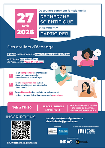 Accessible à toutes et tous à partir de 10 ans et adapté aux profils des personnes participantes, l’atelier ne nécessite pas de connaissances préalables sur les sciences et le domaine de la recherche.