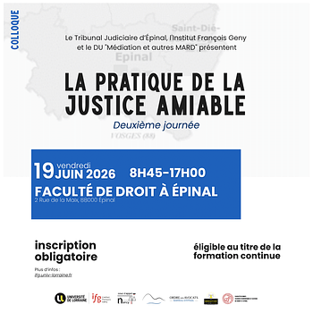 Organisée conjointement avec le Tribunal judiciaire et le Barreau d’Épinal, cette journée se tiendra à la Faculté de droit à Épinal et réunira universitaires, magistrats, avocats, médiateurs, conciliateurs et experts judiciaires autour d’un enjeu central : comment la justice amiable a-t-elle évolué depuis juin 2025.